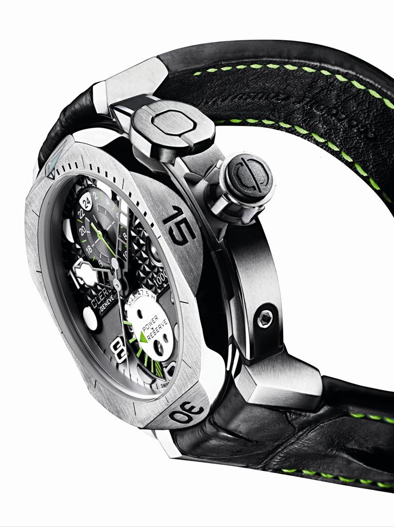 | Clerc begins the year with the Hydroscaph Steel GMT, one of the world’s most sophisticated diver’s watches. Water-resistant to 1,000 metres, it revisits the underwater world in confident and dynamic style, resolutely geared up for adventure. Sporting a new material, colour and dial, the collection is optimised while maintaining its characteristic design features: the 103-part octagonal case, extreme readability, and the automatic helium valve. | ||||||||||