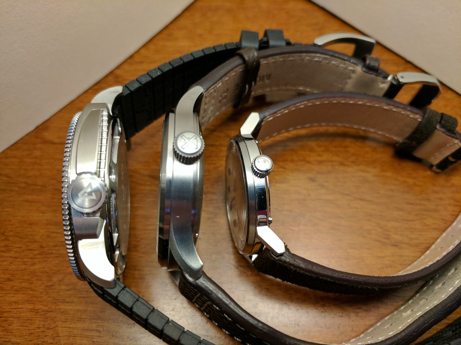 All thee feature stainless steel cases, with the Aninomo boasting a solid case back, which is screwed down, while the other two have